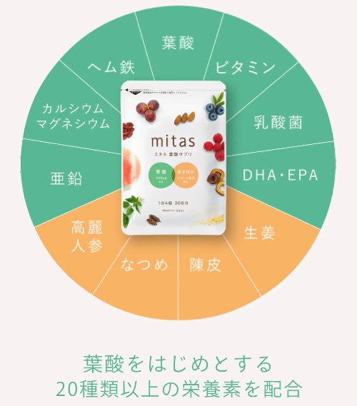 数ある葉酸サプリの中でもイチオシなのが、mitas(ミタス)です。