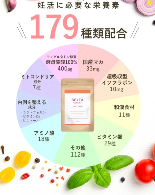 ベルタシリーズから販売中のベルタプレリズムは、マカやイソフラボンなどなど、特に 妊活期間にピッタリな成分が配合されています。