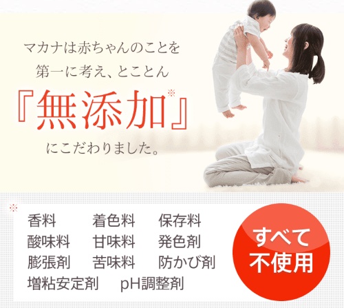 マカナは、香料や着色料、保存料といった添加物を加えずに作られています。放射能の検査や安心・安全マークを取得していたりと、 安全性にこだわっているのもマカナの強みでしょう。